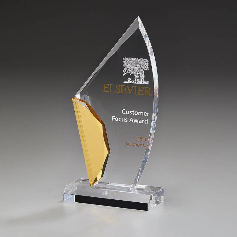 Ein Juwel unter den Trophäen: Edel, stilvoll und modern. Durch das dezent aufgesetzte, goldfarben glänzende Acryl, wird der Jewel Award seinem Namen gerecht und wirkt besonders exklusiv.