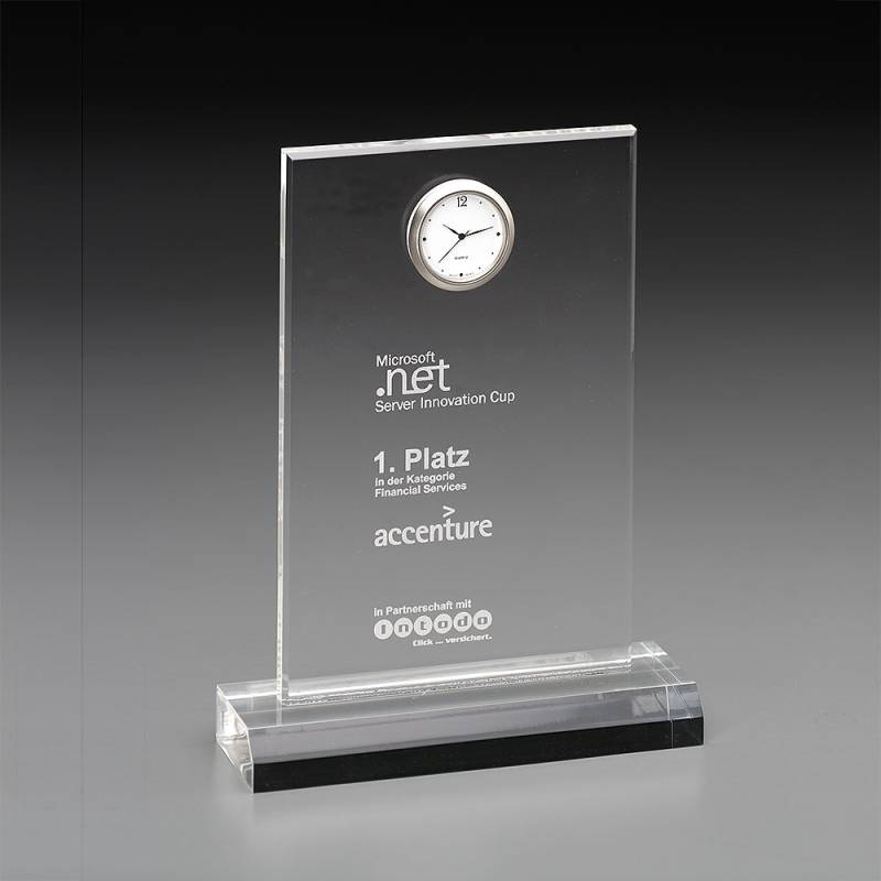 Diese Tischuhr besticht durch schlichte Eleganz. Die Acrylplatte hat eine Größe von 180 x 120 mm und bietet viel Platz für Ihre persönliche Gravur.