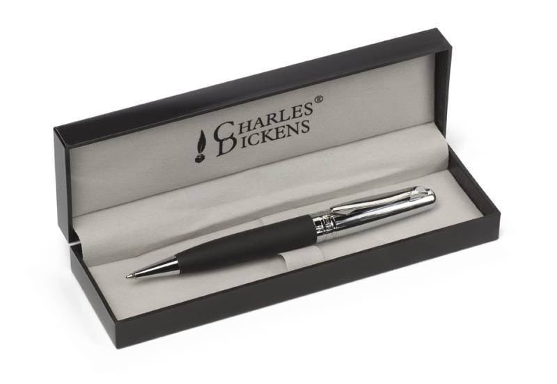 Charles Dickens Kugelschreiber 'Brilliant' aus Metall, Drehfunktion, Metall-Clip, Etui aus Kunststoff, schwarze Mine
