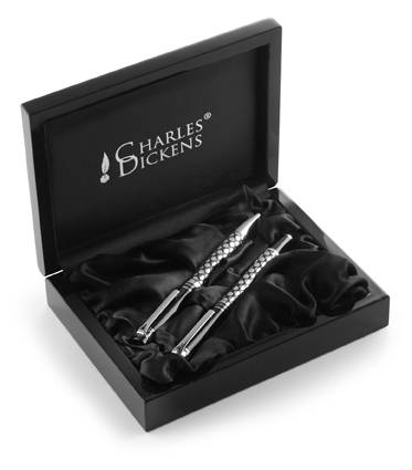 Charles Dickens Schreibset 'Barnaby', Holz-Geschenkbox, Set bestehend aus Kugelschreiber und Rollerball (beide mit schwarzer Mine)