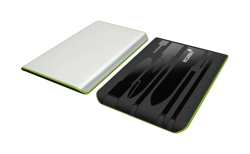 Die innovative Toolkarte wird Ihr unentbehrlicher Reisebegleiter: 9 klassische Nothelfer, wie Schere, Klinge, Nagelfeile, Kugelschreiber u. a. in einer perfekt gestalteten Box. Und dabei nicht größer als eine Scheckkarte. Die handgestrahlte matte Edelstahloberfläche macht MULTI TEC zum außergewöhnlich schönen, unentbehrlichen Alleskönner. Ein modernes Accessoire in vier Farbkombinationen. Ausstattung: Schere, Klinge, Kugelschreiber, Pinzette, Nagelfeile mit Schraubendreher, Zahnstocher, Nadel, Schraubendreher, Maßstab (cm / inch).