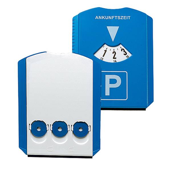 Kunststoff-Parkscheibe mit glatter Kratzkante, Kratzzacken und Wasserabstreifer. Auf der Rückseite befinden sich 3 Halterungen für Einkaufswagenchips oder 1 Euro Münzen. Standardmäßig mit 3 bunt gemischten Chips bestückt, Wunschfarben auf Anfrage. Entspricht Paragraph 41 StVO. Einsetzbar von -10°C bis +60°C.