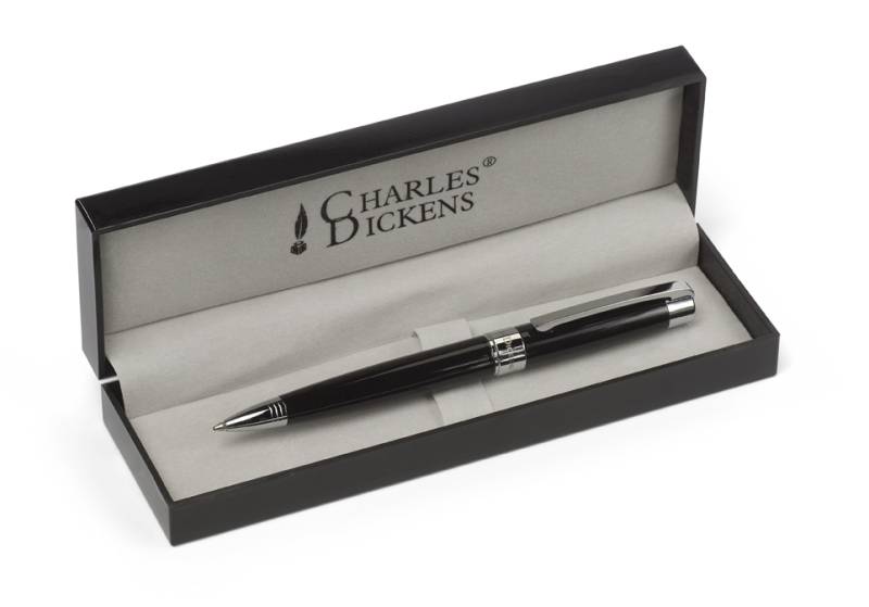 Charles Dickens Kugelschreiber 'Troja' aus Metall, Drehfunktion, Metall-Clip, Etui aus Kunststoff, schwarze Mine