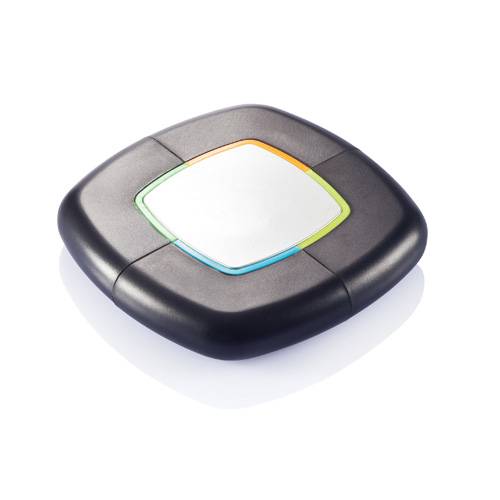 Quadratischer Marker mit 4 Farben: gelb, grün, blau und orange. Geschütztes Design®