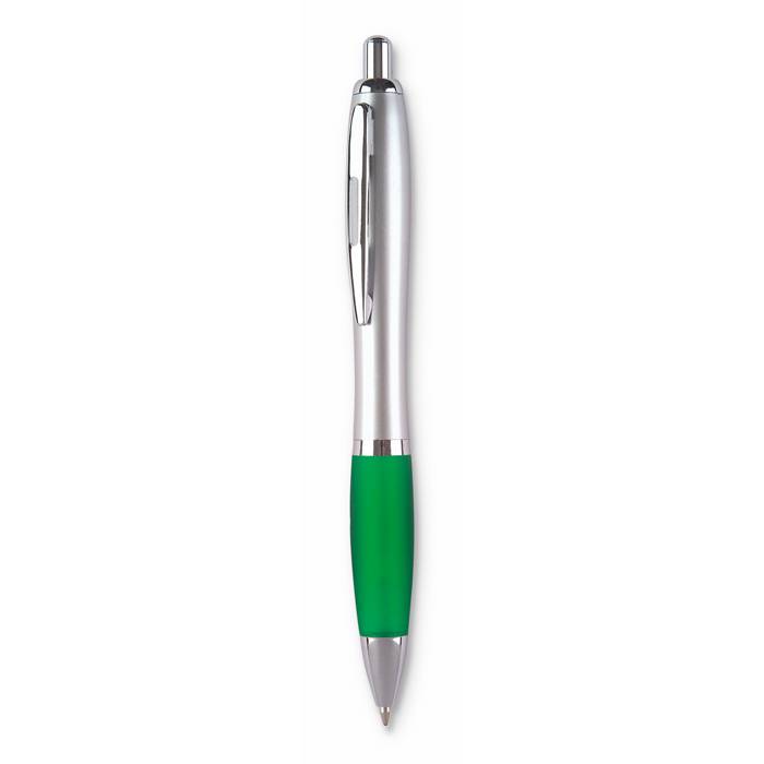 Druckkugelschreiber aus ABS in satiniertem Finish und mit farbigem Softgriff. Schwarze Tinte. Farbe: grün. Anfragen über info@takutrends.de
