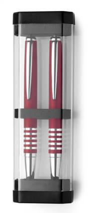 Schreibset 'Manhattan' aus Metall, farbig lackiert, Metall-Clip, Set bestehend aus Druckbleistift, Kugelschreiber (schwarze Mine) und Kunststoff-Etui