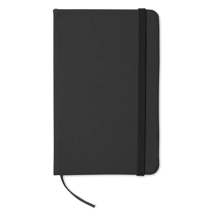 DIN A6 Notizbuch im Soft-PU-Einband mit 96 Seiten Blankopapier und einem elastischem Verschlussband. Farbe: schwarz. Anfragen über info@takutrends.de