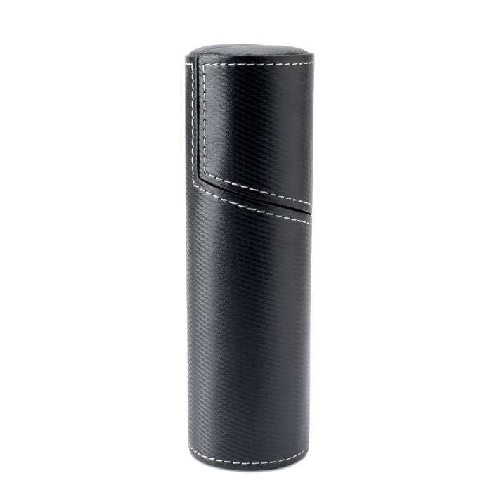 Metall-Drehkugelschreiber in runder PU-Hülse. Blaue Tinte. Farbe: schwarz. Anfragen über info@takutrends.de