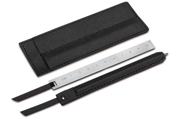 Schreibtisch-Set, Kugelschreibermine blau, Polybeutel, schwarz, Kunstleder, Metall