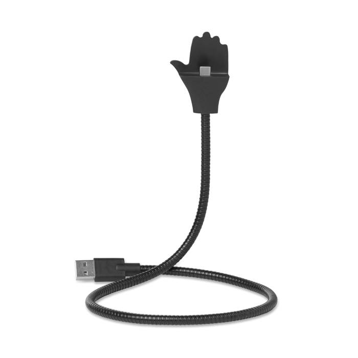 2 in 1 USB-Kabel aus Stahl mit Halterung in Form einer Hand. Flexibles Stehkabel, um 360° drehbar, um Ihren idealen Blickwinkel einzustellen. Lade- und Datentransferkabel. Inkl. Clip mit 3M Sticker auf der Rückseite. Geeignet für Android-Handys. Typ C USB. Farbe: schwarz. Anfragen über info@takutrends.de