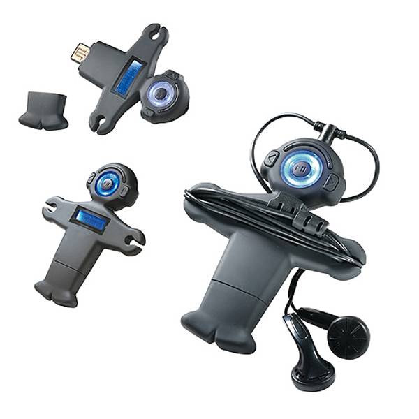 MP3 Player und USB Stick in einem. Sauberes Aufwickeln des Kabels in den Händen des Players möglich.