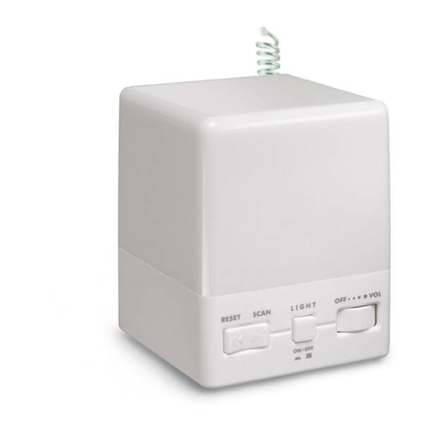 FM Autoscanradio in Kubusform, Wechsellichtfunktion (7 Farben), Stromanschlussbuchse, (exkl. Adapter), flexible Antenne, Kunststoff, weiß, (inkl. 3 x Batterien ("AAA")), in REFLECTS-Geschenkverpackung, CE