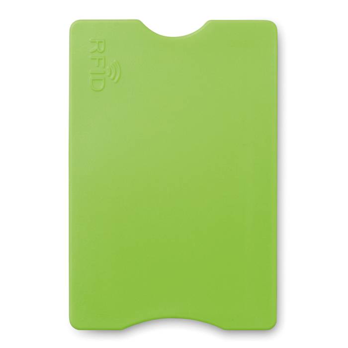 RFID Kreditkarten-Schutzhülle. Aus PS mit Aluminium im Inneren. Sie schützt Ihre Karte vor Auslesen (Skimming). Farbe: limettengrün. Anfragen über info@takutrends.de