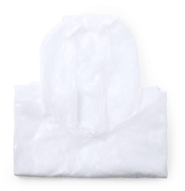 Poncho für Erwachsene in weißer, gefrosteter Farbe -Größe 127x102 cm-. Präsentiert in einem individuellen Behälter mit Deckel und farblich passendem Anhänger. Der Behälter ist in einer breiten Palette von Farben erhältlich. Einheitsgröße.