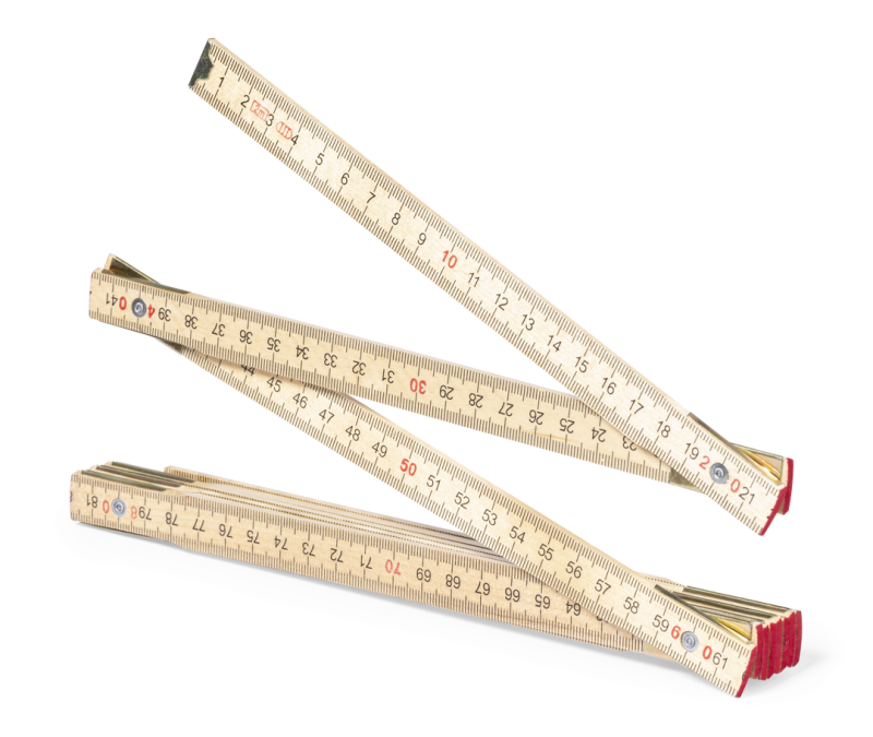 Klassisches Tischlerlineal aus Naturholz. Zusammenklappbar, mit 10 Segmenten und 2 m Länge.