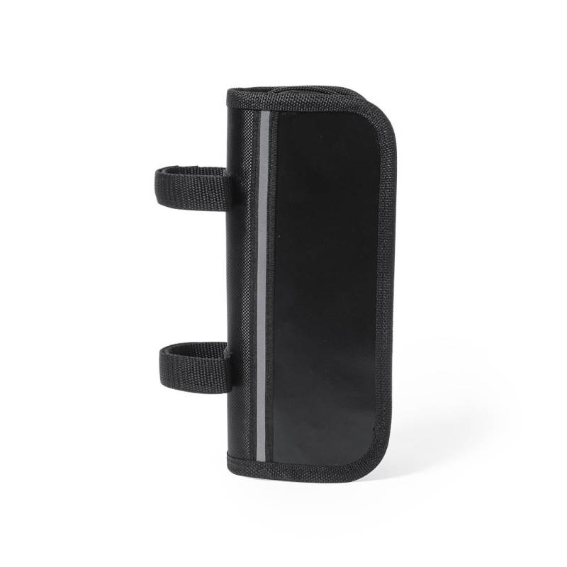 Komplettes Fahrradreparaturset mit 17 Zubehörteilen. Präsentiert in einem widerstandsfähigen 600D Polyester-Etui mit Reißverschluss und Klettverschluss. Inklusive Reifenentferner, Multitool, Schraubenschlüssel, Handpumpe mit Doppelventil, Reifenpannenset und Bedienungsanleitung.