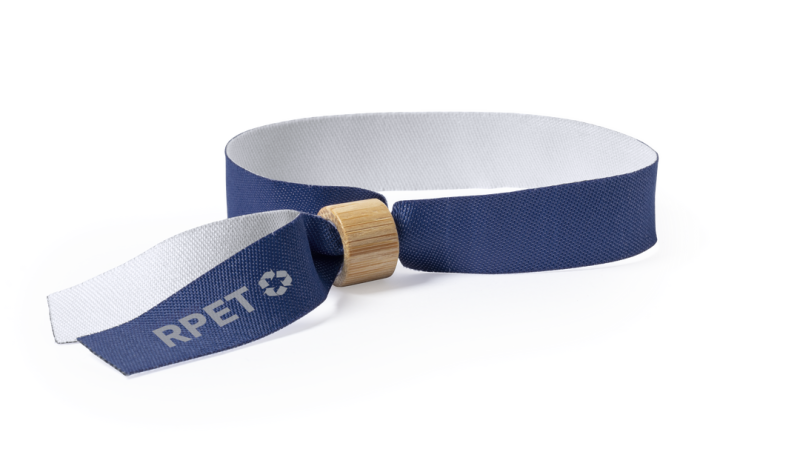 Linie "Natur" Event-Armband aus RPET-Polyester 160g/m2. Hergestellt aus recyceltem Kunststoff, um die Wiederverwendung von Kunststoffabfällen zu fördern und einen Beitrag zur Nachhaltigkeit des Planeten zu leisten. Mit Bambusverschluss und in einer breiten Farbpalette erhältlich. Das weiße Armband ist speziell für Sublimationsdruck. RPET-Emblem auf dem Armband aufgedruckt.