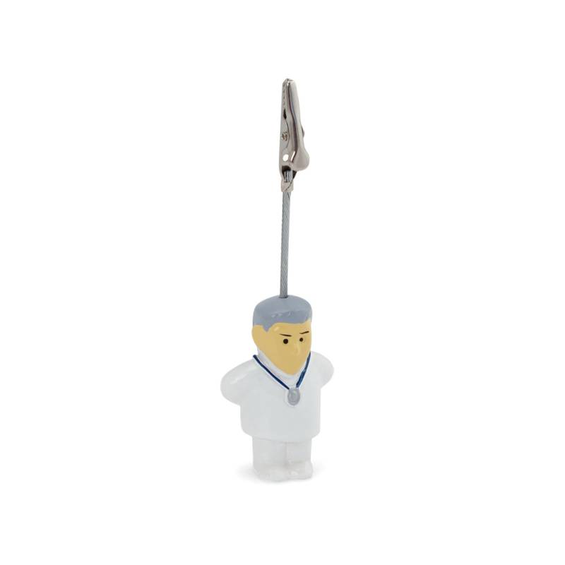 Notizhalter mit originellem Arzt-Design und Metallclip.