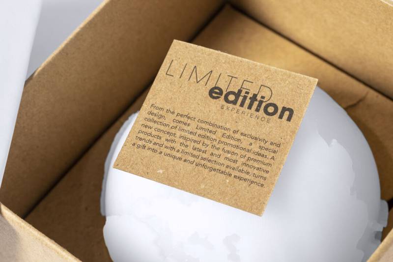 Limited Edition -Duftkerze. Lassen Sie sich von dem Gefühl umhüllen, eine Kerze anzuzünden, und bewegen Sie sich durch das Vanillearoma und das Design der Weltkugel. Ein ideales Geschenk, um ruhige Atmosphären zu schaffen, unendliche Gefühle und Empfindungen zu wecken oder um Teil der Dekoration zu sein. Inklusive Unterlage aus natürlichem Bambus. Aus der perfekten Kombination von Exklusivität und Design ist Limited Edition entstanden, eine besondere Kollektion von Werbeideen in limitierter Auflage. Ein neues Konzept, inspiriert durch die Verschmelzung von Premium-Artikeln mit den neuesten und innovativsten Trends und mit einer begrenzten Auswahl an Einheiten, die ein Geschenk zu einem einzigartigen und unvergesslichen Erlebnis machen. Exklusiver Limited Edition-Präsentationskoffer, Design durch gewerbliche Schutzrechte geschützt. Einschließlich einer Karte mit der Beschreibung von Limited Edition Experience auf recyceltem Karton.