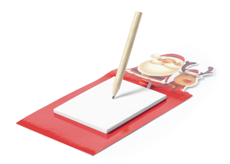 Magnet mit Notizblock in einem lustigen Weihnachtsbaumdesign. Inklusive 40 unbedruckten Blättern und Bleistift aus Naturholz.