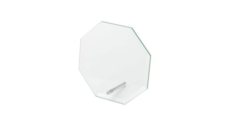 Trophäe aus dickem Glas mit elegantem achteckigem Design - speziell für den Laserdruck entwickelt. Präsentiert in einem individuellen Schutzcase.