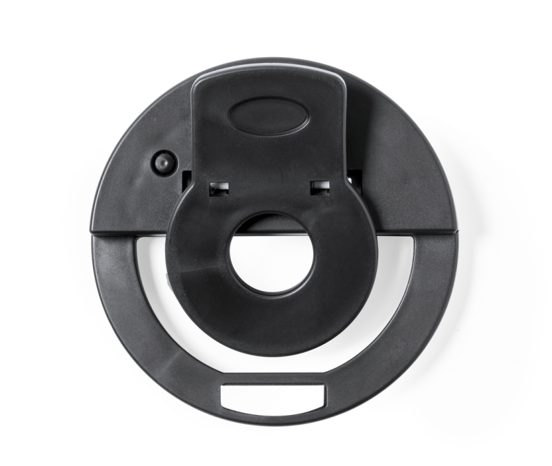 LED-Lichtring mit Smartphone-Befestigung aus widerstandsfähigem ABS. 28 LEDs, mit 3 Intensitätsstufen und über USB aufladbar (Micro-USB-Kabel im Lieferumfang enthalten). Präsentiert in einer attraktiven Designbox. Handbuch in Spanisch und Englisch verfügbar.