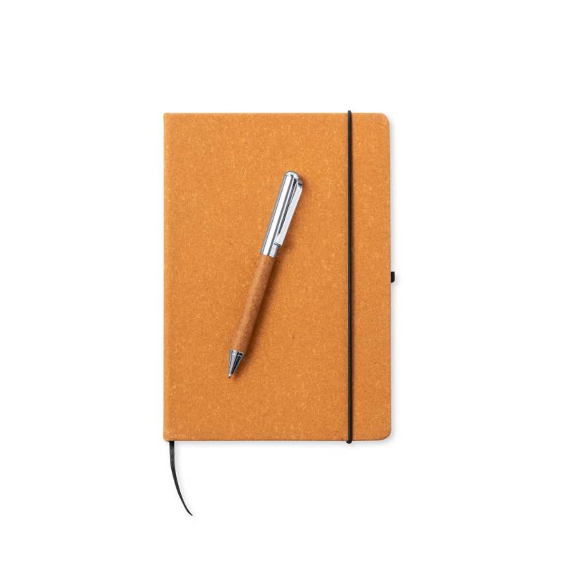 Set mit Notizblock und Kugelschreiber aus recyceltem Leder. Enthält:.Notizblock mit hartem Einband aus recyceltem Leder, mit 100 linierten Seiten. Inklusive Lesezeichen, elastischer Bindung und Kugelschreiberhalter in passender Farbe. Mit dem unverwechselbaren Logo für recyceltes Leder auf dem hinteren Einband.Kugelschreiber aus verchromtem Metall mit einem Gehäuse aus recyceltem Leder. Mit stilvollem Metallclip und passendem Zubehör, Drehmechanik und blauschreibender Tinte. Mit dem unverwechselbaren Logo für recyceltes Leder auf dem Gehäuse.Das Set wird in einem eleganten Etui im Kraftdesign präsentiert, mit separatem Fach für Notizblock und Kugelschreiber.Recyceltes Leder gewinnt die Fasern zurück, die bei der Herstellung von Leder weggeworfen werden, minimiert die Materialverschwendung, trägt zur Reduzierung der Umweltbelastung bei und bewahrt gleichzeitig die ursprünglichen Eigenschaften des Leders.