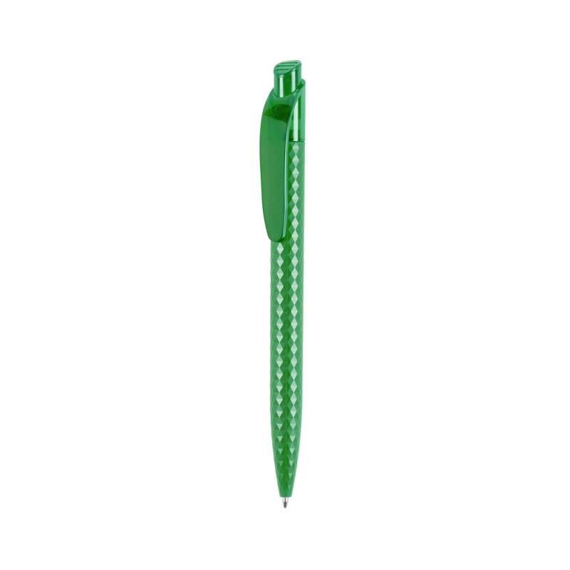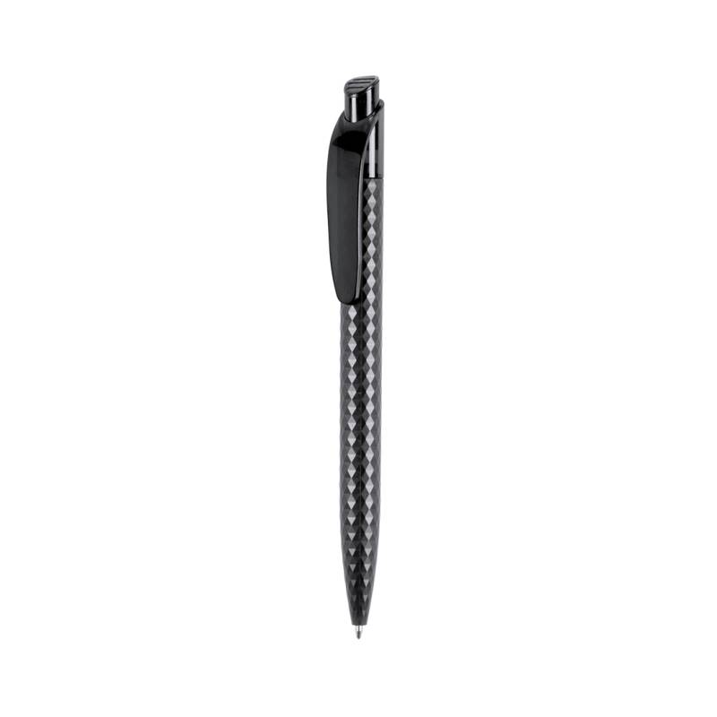 Druck-Kugelschreiber mit originellem Rauten-Design und sehr angenehm anzufassendem Gehäuse in einer Vielzahl von lebendigen Farben. Mit transparentem Clip und Druckknopf sowie blauer Tinte.