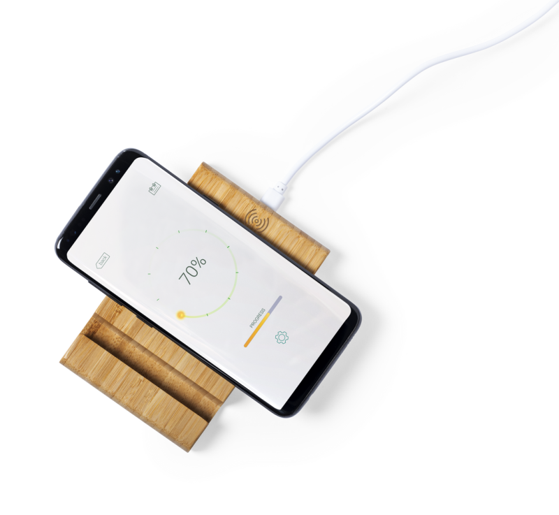Drahtloses Ladegerät 5W aus der Nature Line, mit integrierter Unterstützung für Smartphones und Tablets. Bambusgehäuse aus natürlichen Stecklingen hergestellt. Inklusive 1 m Micro-USB-Kabel und kompatibel mit Geräten, die mit kabelloser Ladetechnik ausgestattet sind. Mit großer Beschriftungsfläche, präsentiert in einer attraktiven Öko-Design-Box.