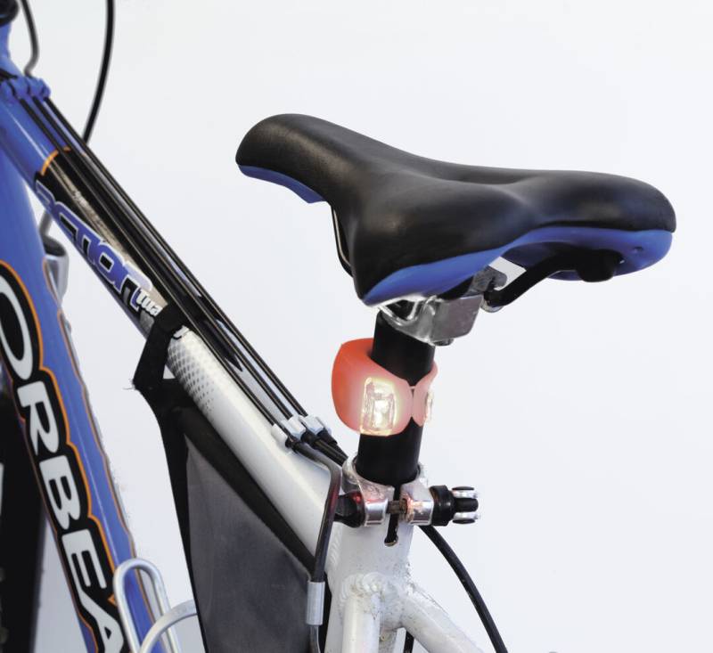 Fahrradlicht mit 2 LEDs und 3 verschiedenen Lichteinstellungen. Mit Gehäuse in lebendigen Farben aus weichem Silikon, das ein einfaches Anbringen ermöglicht. Knopfzelle inklusive. Präsentiert in einer individuellen Box.