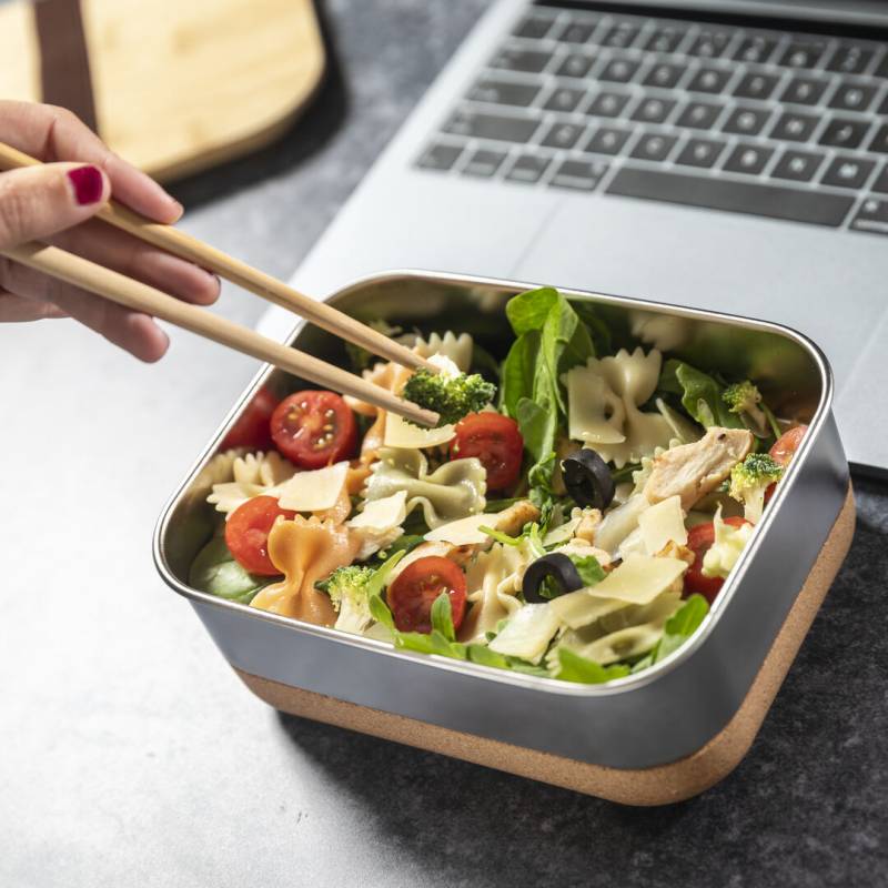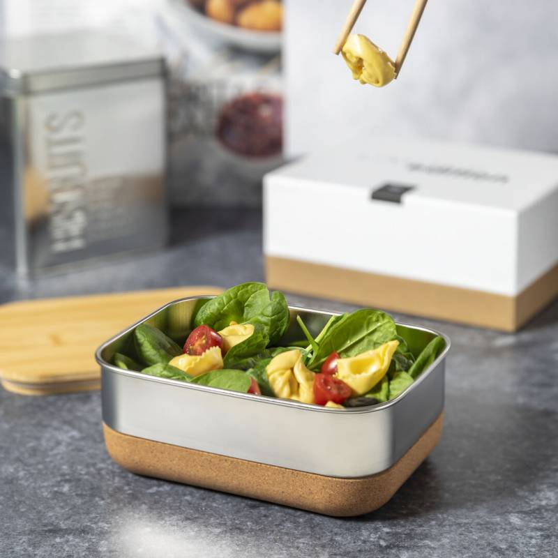 Lunchbox Limited Edition Ein faszinierender Entwurf, der Design, Funktionalität und Nachhaltigkeit vereint. Besteht aus einem Hauptfach aus rostfreiem Stahl mit 1 Liter Fassungsvermögen, einem hermetischen Deckel aus Bambus und einem Boden aus Naturkork. Inklusive Sicherheitsgurt. Aus der perfekten Kombination von Exklusivität und Design ist Limited Edition entstanden, eine besondere Kollektion von Werbeideen in limitierter Auflage. Ein neues Konzept, inspiriert durch die Verschmelzung von Premium-Artikeln mit den neuesten und innovativsten Trends und mit einer begrenzten Auswahl an Einheiten, die ein Geschenk zu einem einzigartigen und unvergesslichen Erlebnis machen. Exklusiver Limited Edition-Präsentationskoffer, Design durch gewerbliche Schutzrechte geschützt. Einschließlich einer Karte mit der Beschreibung von Limited Edition Experience auf recyceltem Karton.