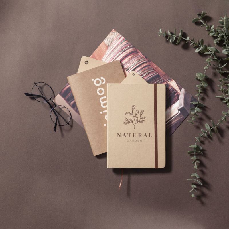 Nature Line A5 Notizbuch mit weichen Einbänden aus widerstandsfähigem Recyclingkarton. 60 einfache Blätter mit Kraft-Finish und recyceltem Abzeichen.