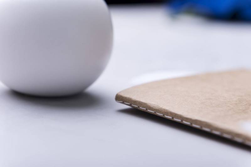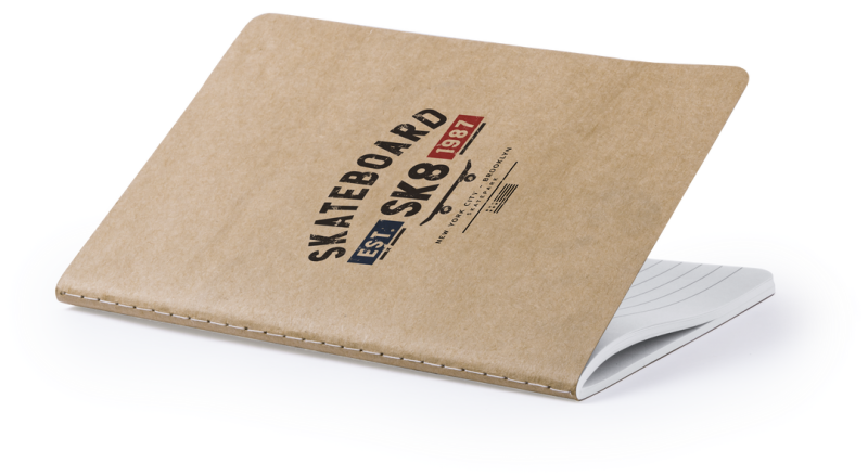 Auffälliges Notizbuch mit Cover aus recyceltem Karton und farblich passenden Steppnähten am Rücken. Mit 60 linierten Blättern.