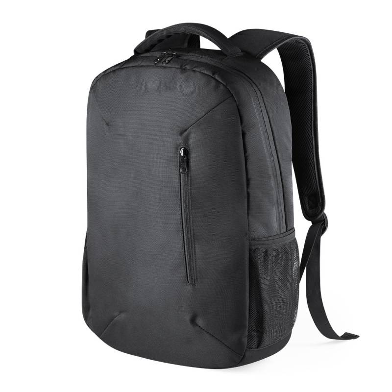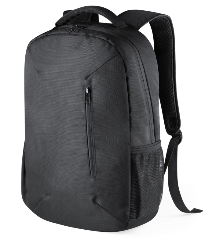 Hochwertiger Rucksack aus strapazierfähigem 1200D-Nylon mit elegantem schwarzem Finish. Mit origineller Außentasche mit Reißverschluss und Trolley-Befestigung. Gepolsterte Innenfächer für Laptops bis zu 15" und Tablets bis zu 12". Gepolsterte Schultergurte und ergonomisch gepolsterter Rücken.
