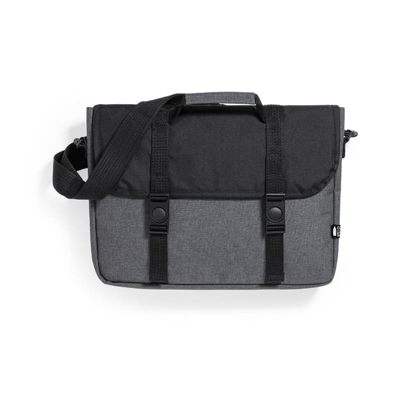 Nature Line Dokumentenhalter und widerstandsfähiges 600D RPET Polyester recycelt und PVC-frei, das Ergebnis der Kombination des Recyclingprozesses von Kunststoffmaterialien mit der alten Technik der Filzherstellung, was zu einem Öko-Trendmaterial recycelten Ursprungs führt. Mit Polsterung und Hauptfach mit Schnallenverschlussriemen; Innentasche mit Reißverschluss und verstellbarem Schultergurt. Mit verstärktem Tragegriff und Zubehör auf der Rückseite zur Fahrwerksverstellung. Widerstandsfähigkeit bis 7kg, mit markantem RPET auf dem äußeren Etikett.