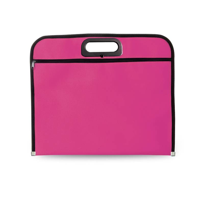 Dokumententasche mit Reißverschluss aus weichem 600D Polyester in lebendigen Farben. Tragegriffe mit originellem Design mit Stanzung, Paspel in Schwarz und Metallverstärkungen am Boden.