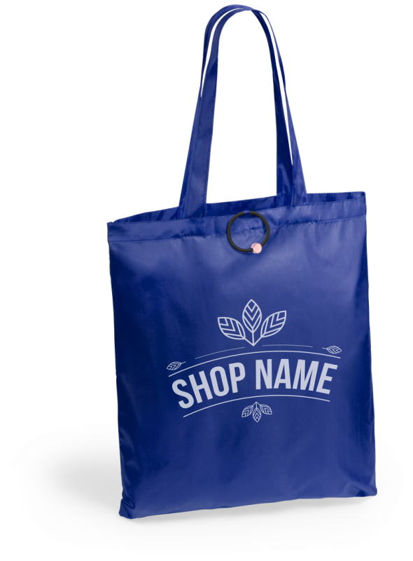 Faltbare Tasche in verschiedenen fröhlichen Farben aus weichem 190T Polyester. Mit Steppnähten und Gummiband zum Fixieren im gefalteten Zustand.