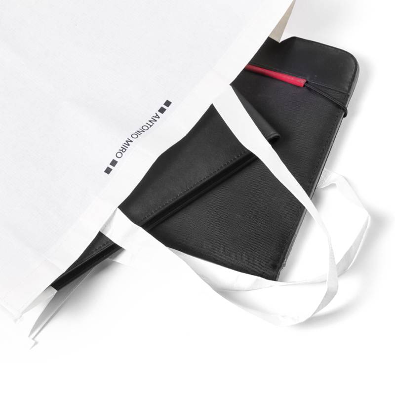 Tasche von Antonio Miró aus weicher und robuster Naturfaser in Weiß. Mit 45 cm langen, verstärkten Griffen, verstärktem Zwickel mit Paspel und Steppnähten. Mit dem Markenlogo. Belastbar mit bis zu 10 kg.