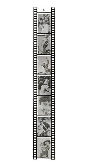 MOVIE STAR mit 7 Bildertaschen. Transparenter Filmstreifen aus weichem Kunststoff für Fotos und Bilder mit mind. 15 x 11cm. Mit Aufhangöse. Maße 116 x 16,5cm. VE 96/24 Stück.