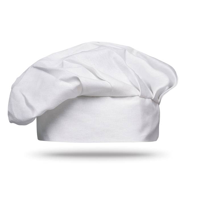 Kochmütze aus Baumwolle 130 g/m². Mit Klettverschluss. Farbe: weiß. Anfragen über info@takutrends.de