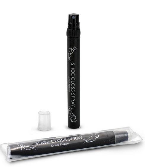 10 ml Shoe Gloss Spray in schwarzer Kunststoffphiole.