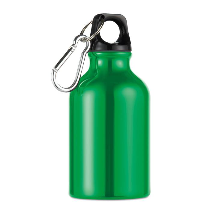 Einwandige Trinkflasche aus Aluminium mit Karabinerhaken. Füllmenge: 300 ml. Farbe: grün. Anfragen über info@takutrends.de