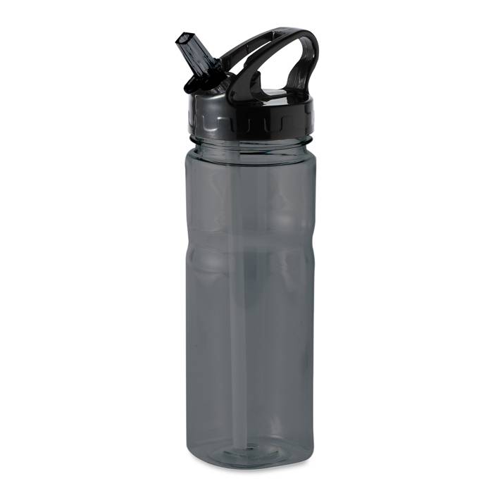 Trinkflasche mit klappbarem Mundstück. Tritan, BPA frei. Füllmenge: 600 ml. Farbe: transparent grau. Anfragen über info@takutrends.de