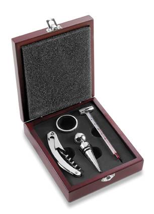 Luxus-Weinset 'Savignon', Holz-Geschenkbox, 5-tlg., Metall-Accessoires