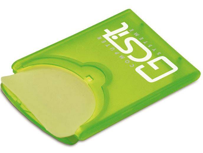 "Pocketseife eckig" – die etwas andere Seife! Durch die optimale Verpackung der Seifenblättchen in kleinen praktischen Kunststoffboxen passen diese in jede Hosentasche und sind somit ideal für unterwegs. Zur schnellen Reinigung der Hände, werden die Seifenblättchen einfach unter fließendem Wasser aufgeschäumt. Wählen Sie zwischen sechs verschiedenen Gehäuseformen und Düften. Die Farbe der Seifenblättchen ist der entsprechenden Gehäusefarbe angepasst. Mit 10 Seifenblättchen ist dieser Streuartikel ein idealer Werbeträger und bietet sich aufgrund der geringen Maße als Mailingartikel geradezu an.