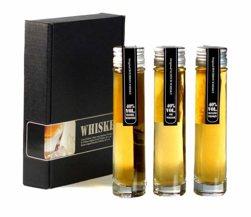 3er-Set Schraubverschlussgläser in schwarzer Box mit personalisierbarer Banderole