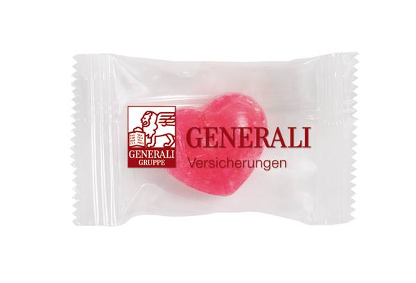Herzbonbon im Flowpack mit 1-fbg. Werbedruck