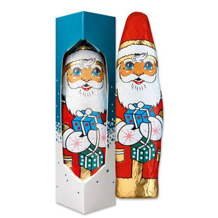 Ein edler Präsent-Karton umschließt bruchsicher diesen imposanten Schokoladen-Weihnachtsmann. Wir bedrucken diesen Präsent-Karton ganz nach Ihren Wünschen vollflächig rundum mit Ihrer saisonalen Grußbotschaft schon ab nur jeweils 78 Stück. Der große Schokoladen-Weihnachtsmann sorgt für viel Aufmerksamkeit auf den Schreibtischen Ihrer Kunden.