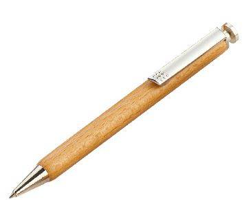 Schicker Holz Kugelschreiber aus Buchenholz. Die Metallteile sind vernickelt. Mit Metalldrücker. Idealer Kugelschreiber für Ihre Promotion.
