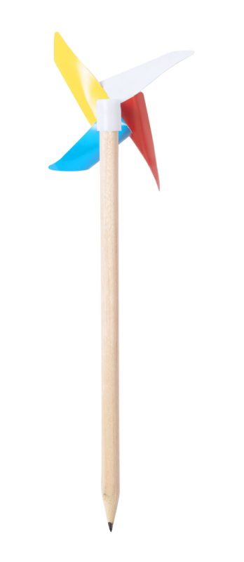 Lustiger Holzbleistift im Sechseck-Design mit mehrfarbiger Mühle. Ungespitzt serviert.